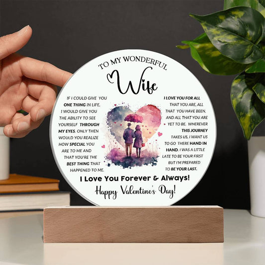 To My Wife - Gift For Wife - Happy Valentine's Day - Acrylic Circle Plaque